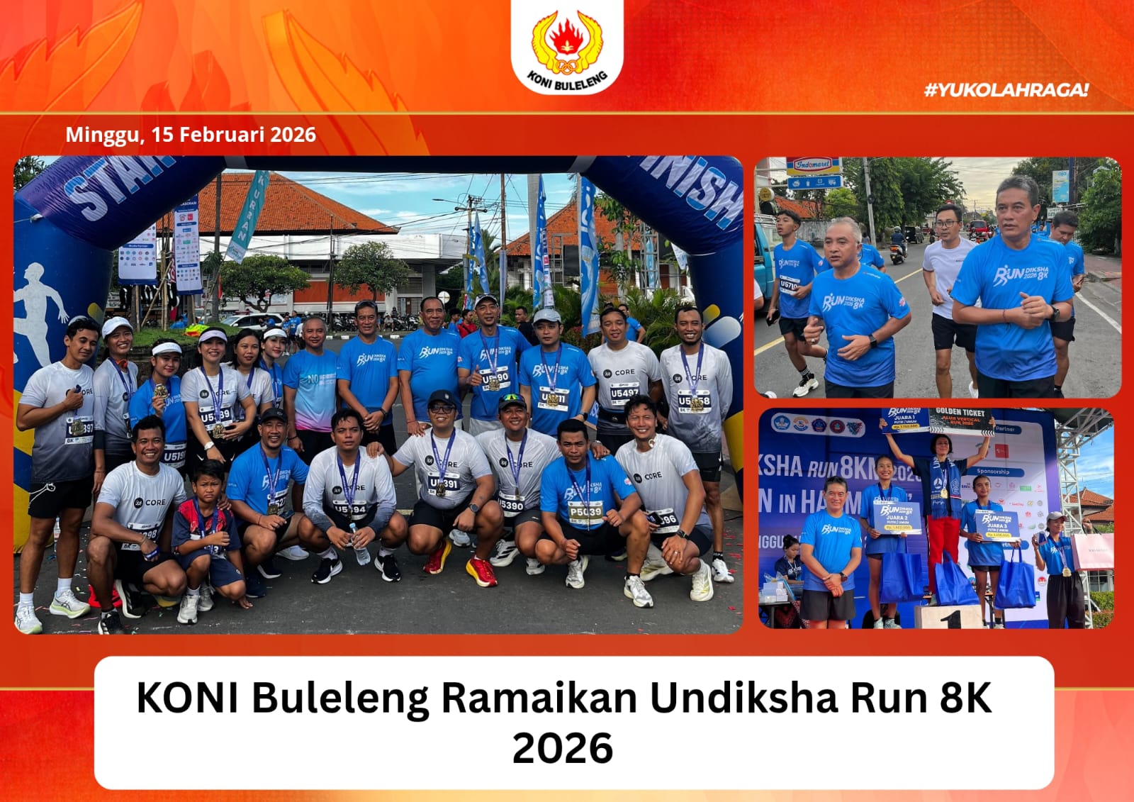 Ketua Umum KONI Buleleng Gede Supriatna, bersama Ketua Harian I Putu Nova Anita Putra ramaikan Undiksha Run 8K 2026, Minggu (15/2/2026).