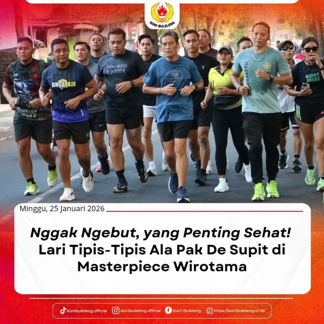 Ketua Umum KONI Buleleng, Gede Supriatna bersama Ketua Harian KONI Buleleng, I Putu Nova Anita Putra ramaikan Fun Run Masterpiece Wirotama, Minggu (25/1/2026)