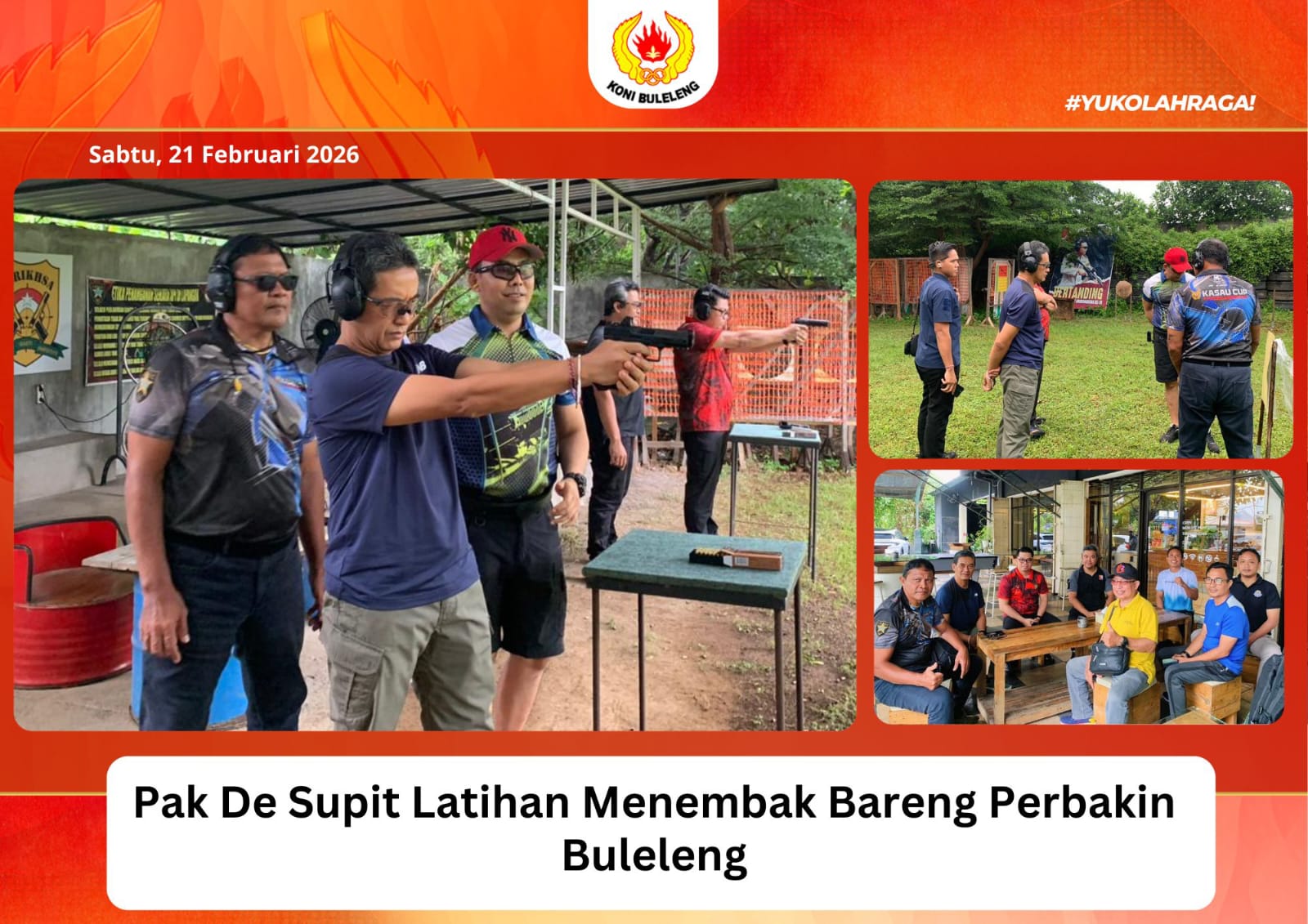 Ketua Umum KONI Buleleng, Gede Supriatna didampingi Ketua Harian, Waka 1, Sekum dan Humas Publikasi KONI Buleleng, memantau kesiapan venue menembak jelang Porprov Bali 2027 di Sekretariat Perbakin Buleleng, Sabtu (21/2/2026).